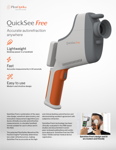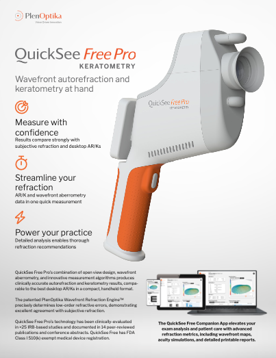 Handheld wavefront AR/K for optometric and ophthalmological practices, including advanced refraction metrics.
